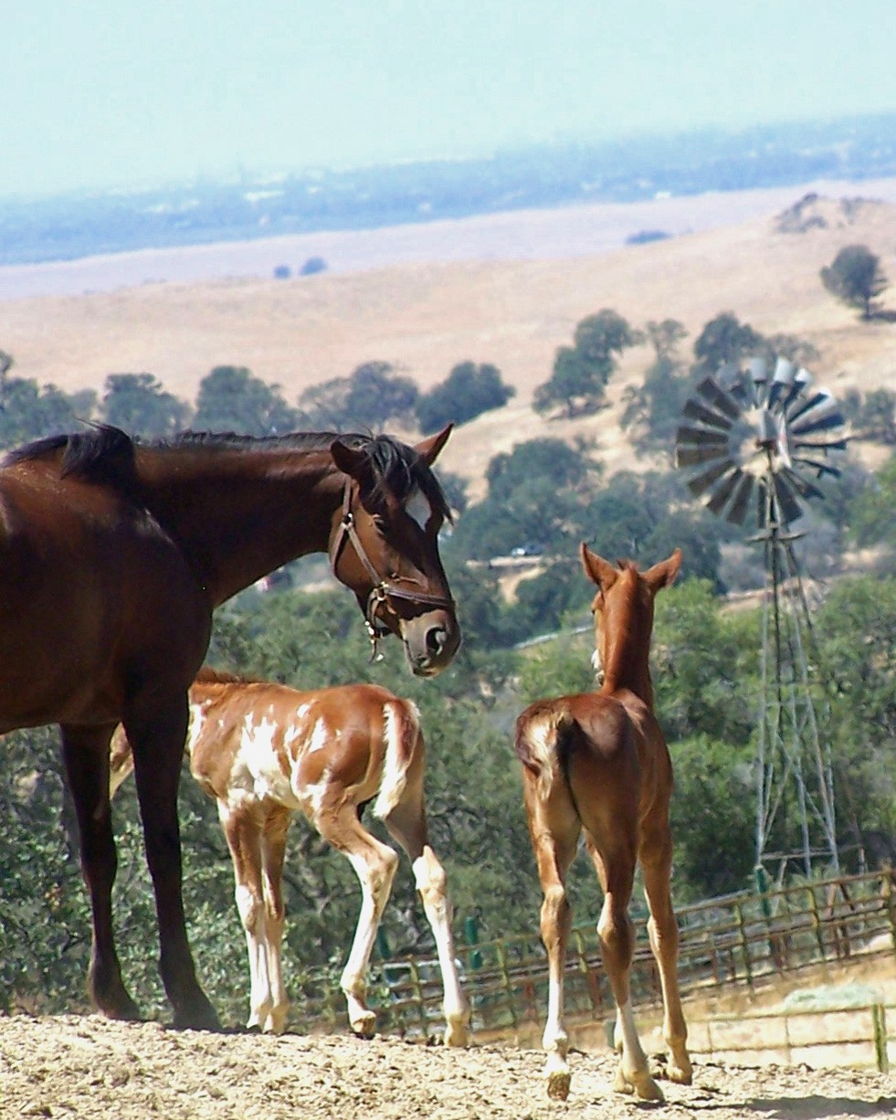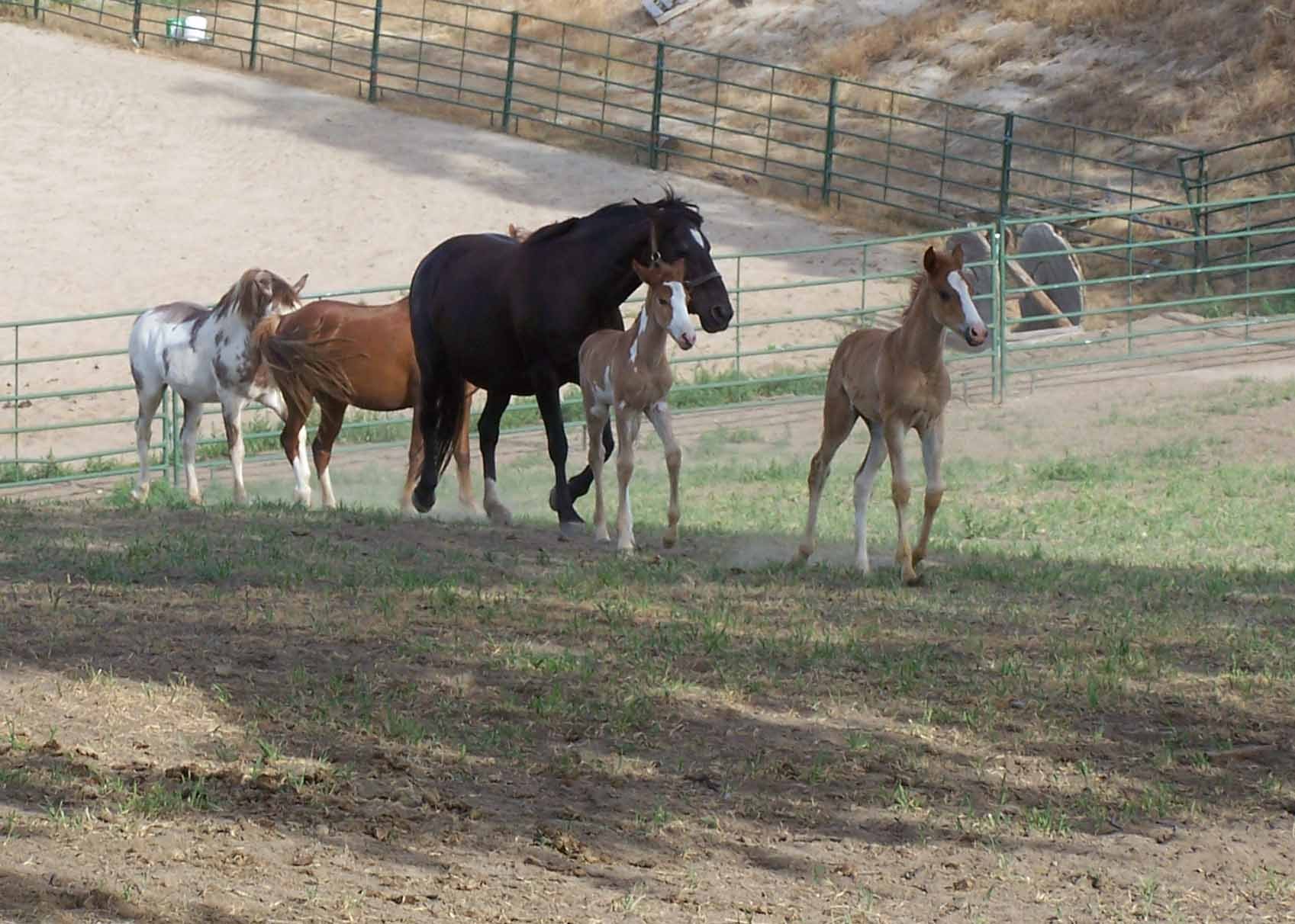 The ranch has a 12 stall barn, 2 mare motels, 1 large outdoor riding and presentation arena, 1 small training arena, 2 round pens, 10 paddocks, and 3 large pastures where visitors can observe natural herd behavior.